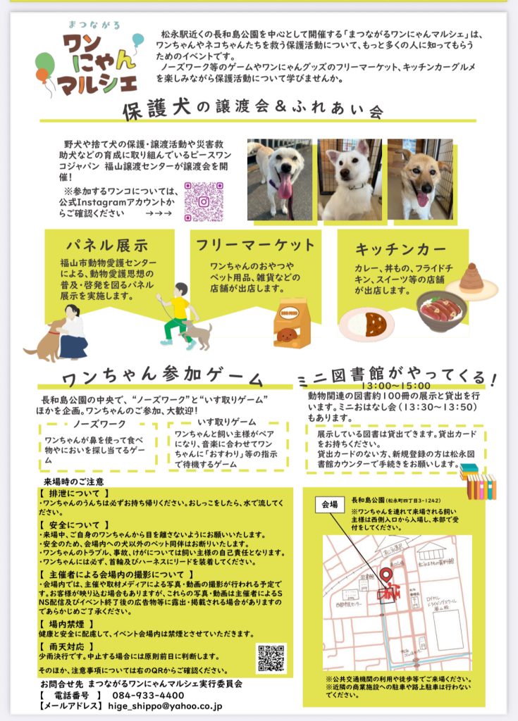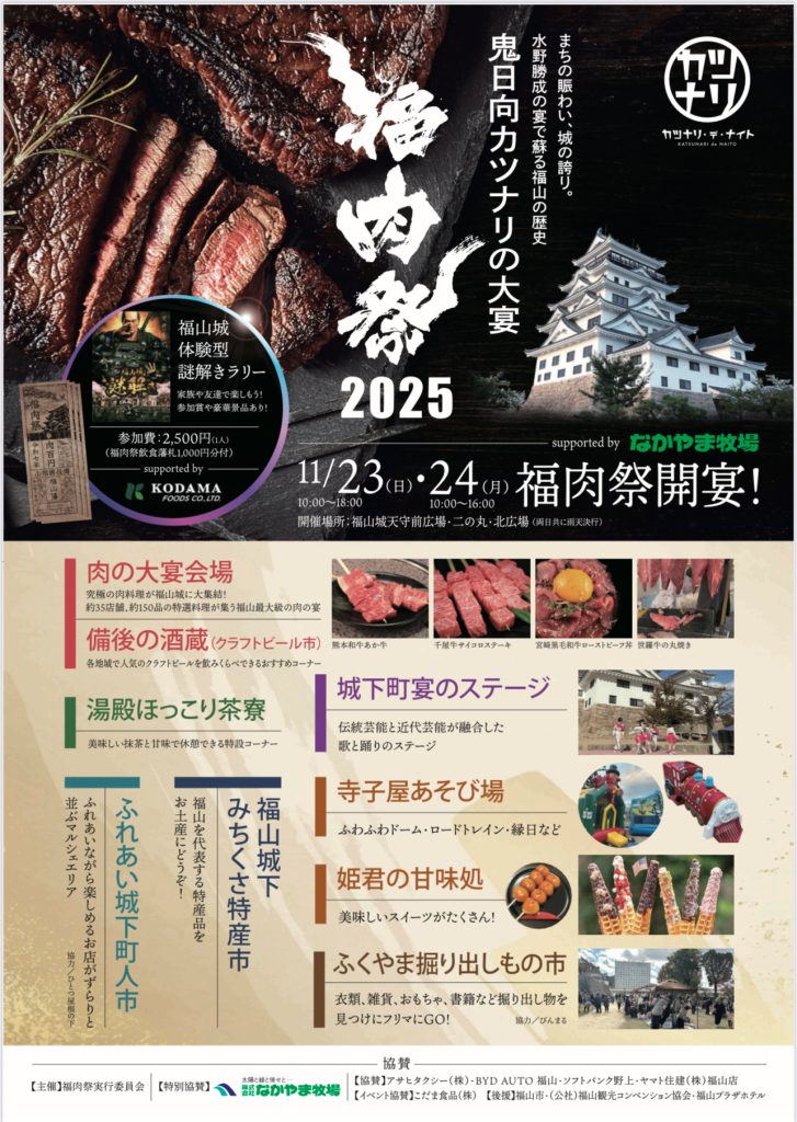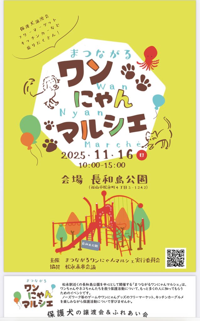 11/8 ふれあいホームタウンかんなべ、11/9 芦田川かわまち広場、11/16 長和島公園、11/23・11/24 福山城天守前広場、二の丸、北広場